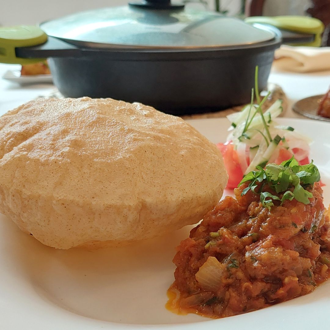 E comido pollo tikka shahlik, arroz, pan de queso y el postre de torrija muy bueno. Todo muy bueno y el servicio excelente